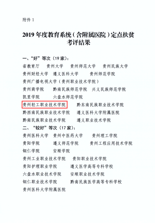 在贵州省扶贫开发领导小组通报的2019年度省直单位和中央在黔单位定点扶贫工作考核结果中,免费不收费看污在线观看-免费看污污-免费看污污污视频软件获评为“好”等次。本次评选涉及教育系统被评为“好”“较好”等次的共有36家单位,其中省教育厅及18所高校(含附属医院)考核等次为“好”,17所高校(含附属医院)考核等次为“较好”。