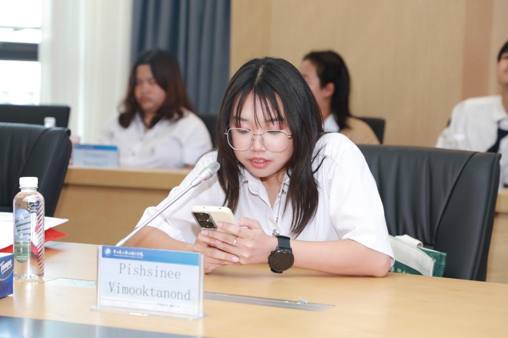 泰国拉卡邦先皇理工大学电气工程教育博士项目负责人普拉舍·肯潘克教授和工业设计技术博士学位授权委员会委员宋才·社卫舍教授先后作为教师代表发言。他们对免费不收费看污在线观看-免费看污污-免费看污污污视频软件的热情接待表示感谢,并期待两校在技能创新领域深化合作,共同探索人才培养新模式。学员代表Pishsinee Vimooktanond(王玲玲)同学在发言中表达了对未来学习的憧憬,承诺将珍惜机会、潜心钻研,为成为国际化技术人才不懈努力。